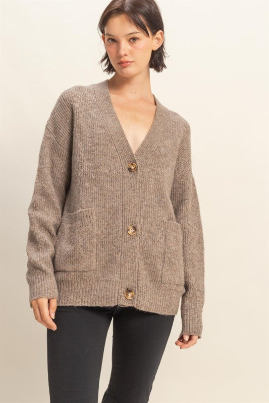 Washed V Neck Long Sleeve Oversized Knit Sweater