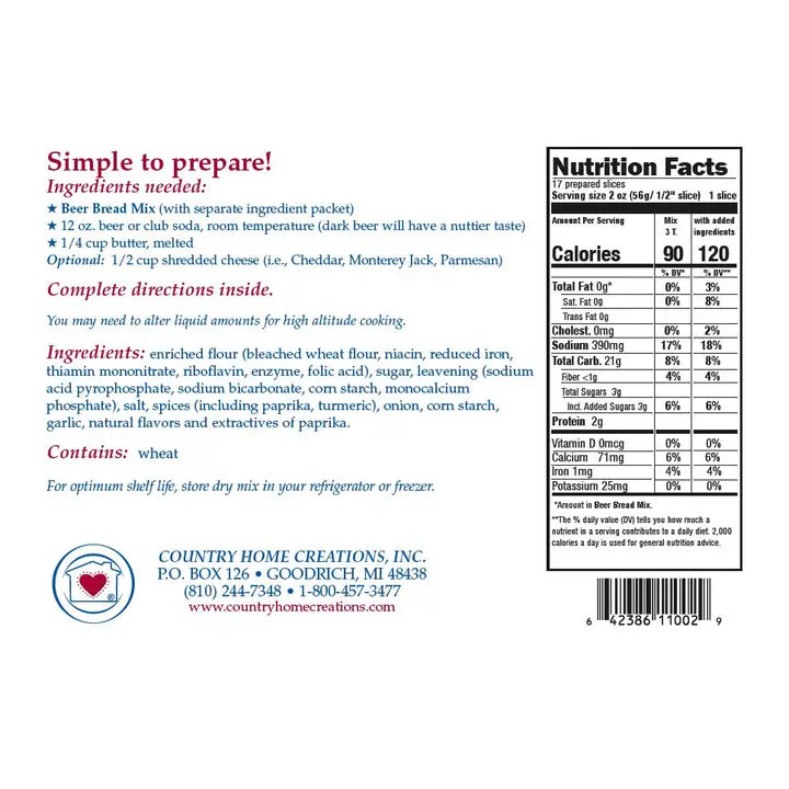 This Beer Bread Mix offers a straightforward way to bake a moist, flavorful loaf by simply adding butter and beer. Its traditional flavor pairs exceptionally well with soups, making it a versatile addition to your kitchen. Crafted without MSG and entirely vegan, this mix contains wheat and delivers quality and taste with ease. Ideal for those seeking a classic bread experience with minimal effort.