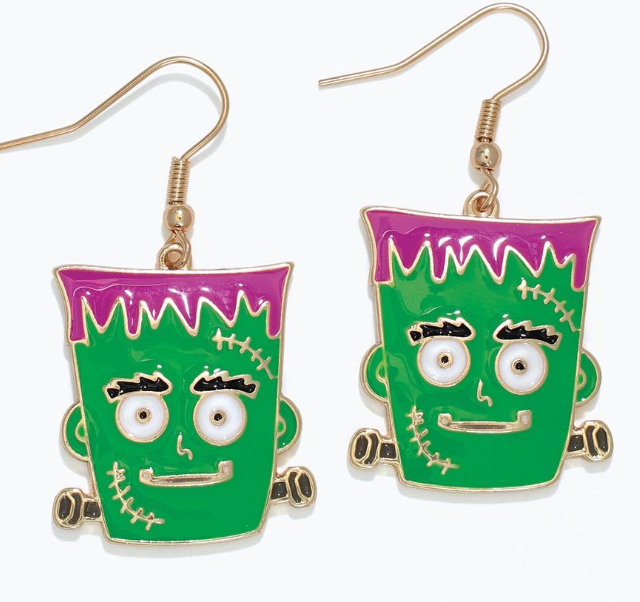 Add a playful touch to your ensemble with these expertly crafted enameled Frankenstein earrings. Each pair features vibrant colors and detailed design, making them perfect for Halloween or everyday fun. Lightweight and durable, they offer comfortable wear while showcasing your unique style.